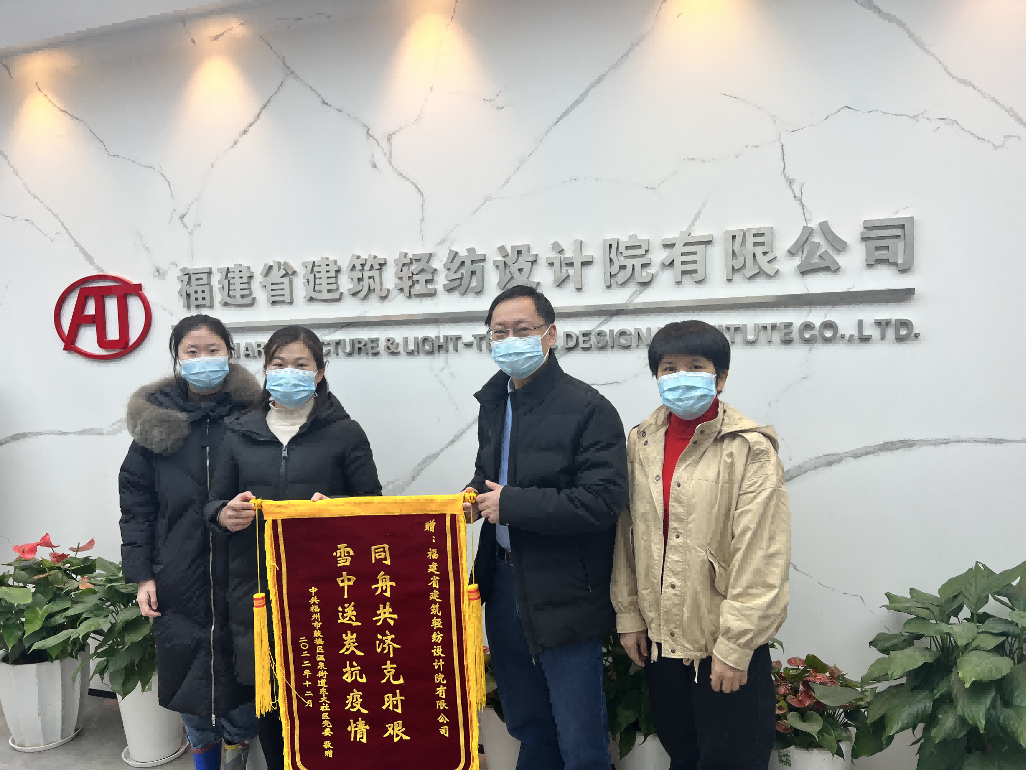 12月14日上午,福州市鼓樓區(qū)東大社區(qū)黨委把一面印有“同舟共濟(jì)克時(shí)艱 雪中送炭抗疫情”的錦旗送到福建省建筑輕紡設(shè)計(jì)院有限公司,感謝設(shè)計(jì)院志愿者在疫情防控工作中用責(zé)任和擔(dān)當(dāng)幫助社區(qū)居民筑起一道堅(jiān)實(shí)的“防疫墻”。