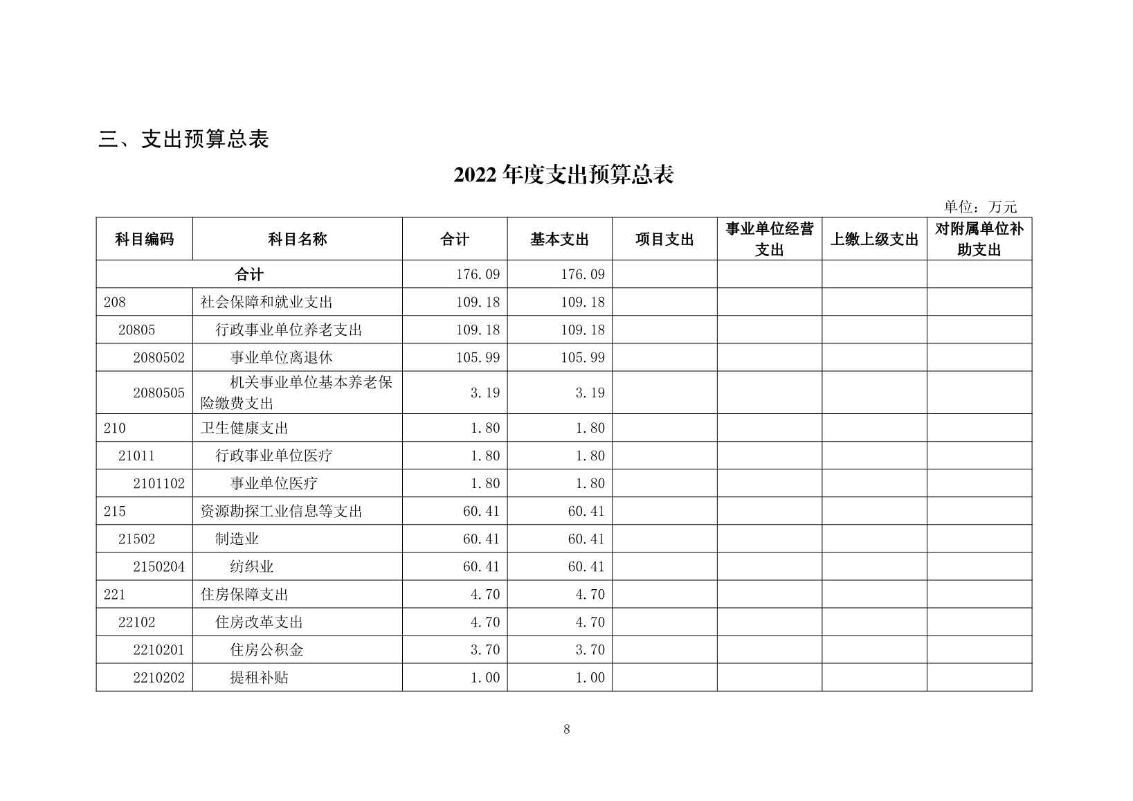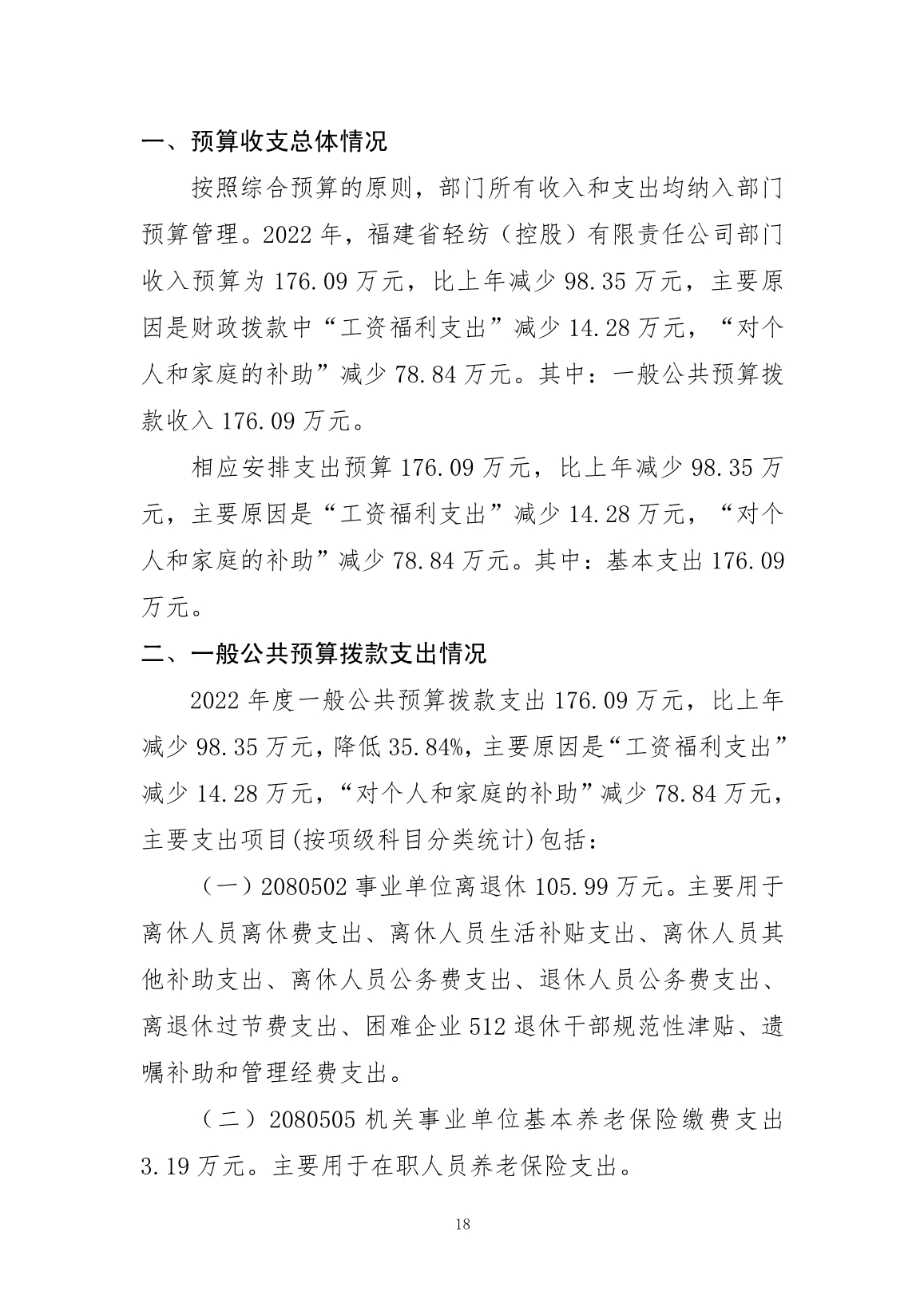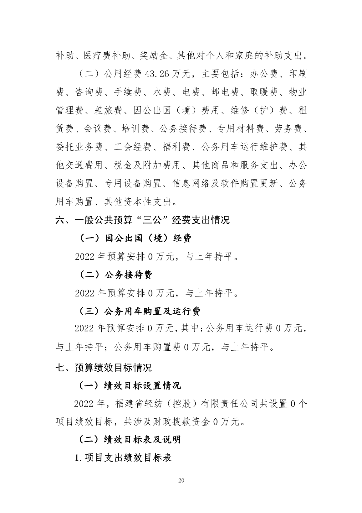 2022年度福建省輕紡(控股)有限責(zé)任公司部門(mén)預(yù)算