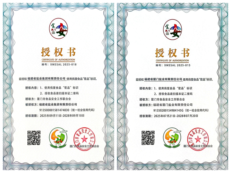 近日,廈門市食品安全宣傳周主題日活動(dòng)隆重舉行,現(xiàn)場(chǎng)同步舉行廈門市“鷺品”標(biāo)識(shí)認(rèn)證授牌儀式,福鹽集團(tuán)及其權(quán)屬企業(yè)廈門鹽業(yè)獲得供廈食品“鷺品”標(biāo)識(shí)正式授牌。